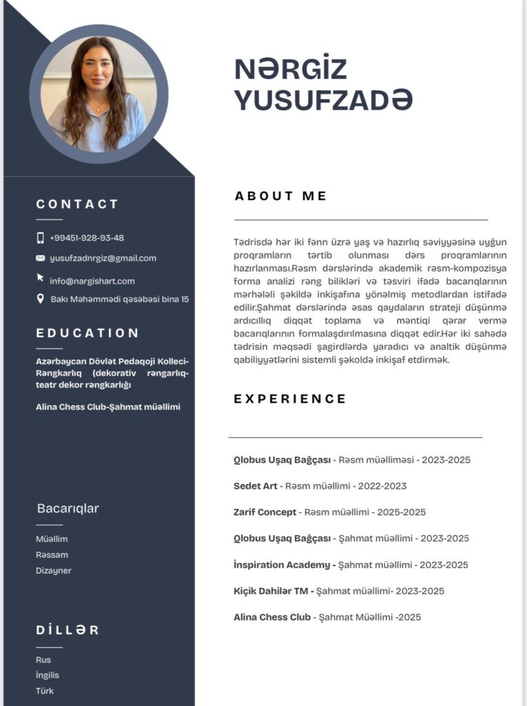 Məqalənin sonunda yerləşən CV yükləmə bölməsi vasitəsilə CV’mi görə bilərsiniz.